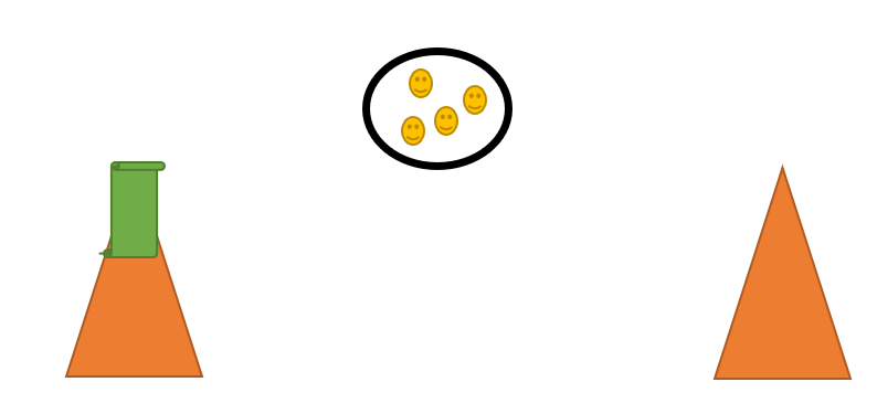 There’s several ways the arena can be arranged to play this game but I’ll keep it super simple for this example. Place one cone on either end of the arena and a barrel off to the side to hold your toys. I like to use towels, balls, or rings for this game because they easily fit on the cones. Below is a little example of how I might set up the ring. The smiley faces and scroll represent our toys for this game.